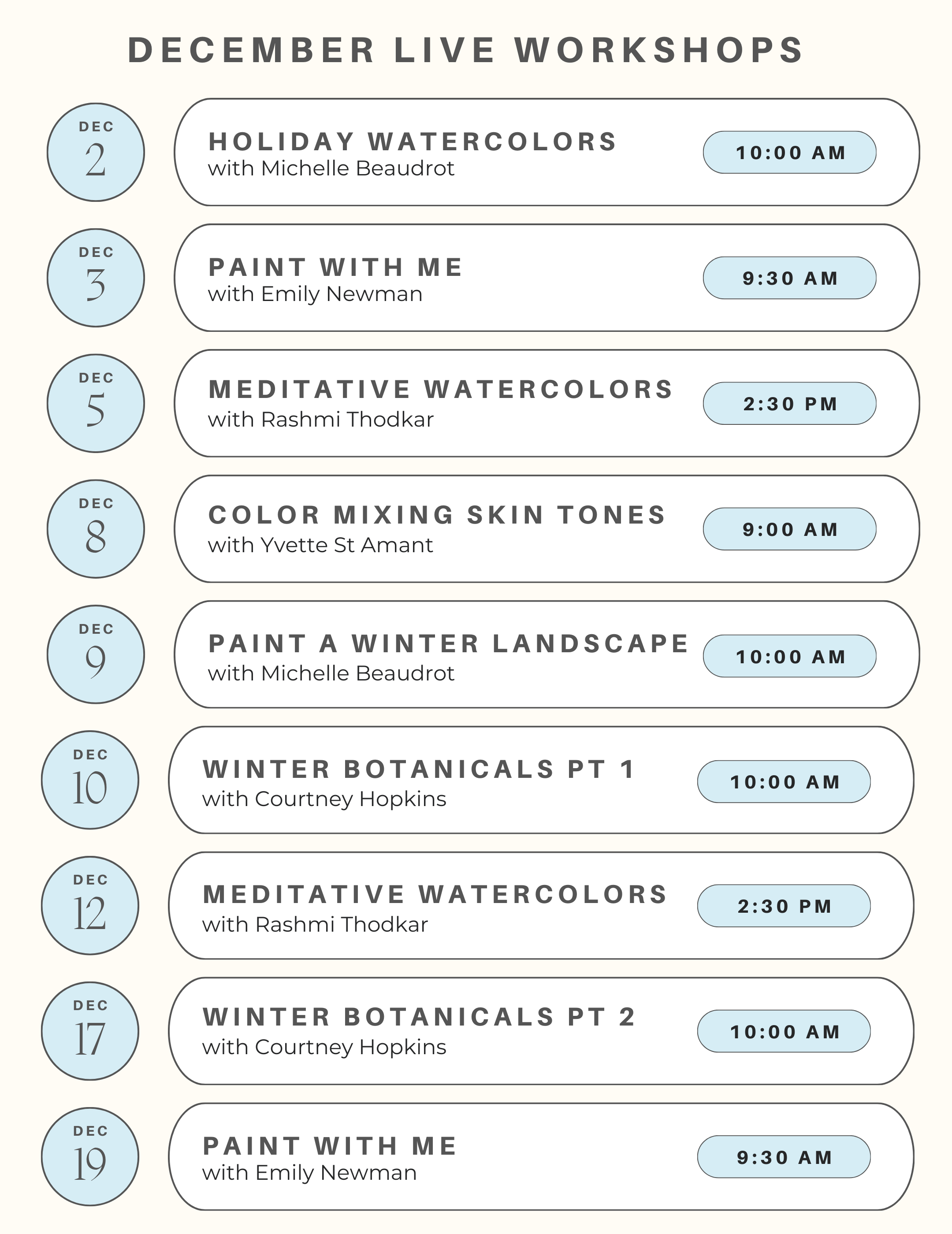 With multiple artists going live throughout the month, there's new workshops for you to join every week!