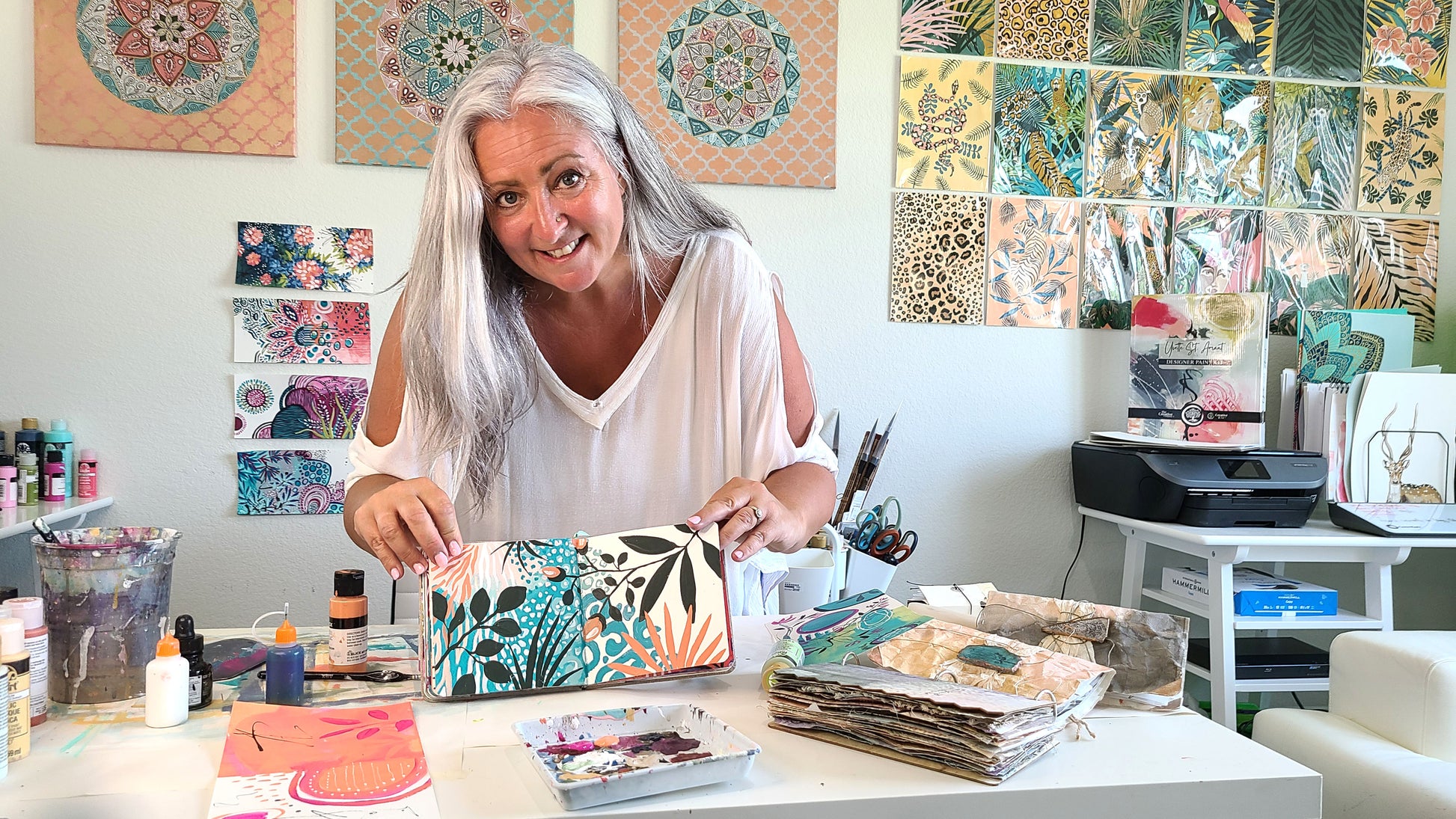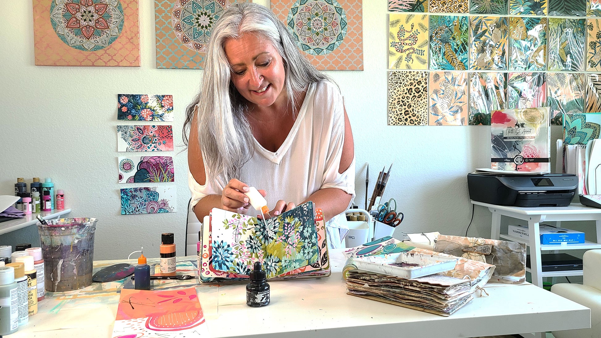 Our artist, Yvette, will walk you step by step through her entire process for painting a beautiful sketchbook full of colorful abstract designs!