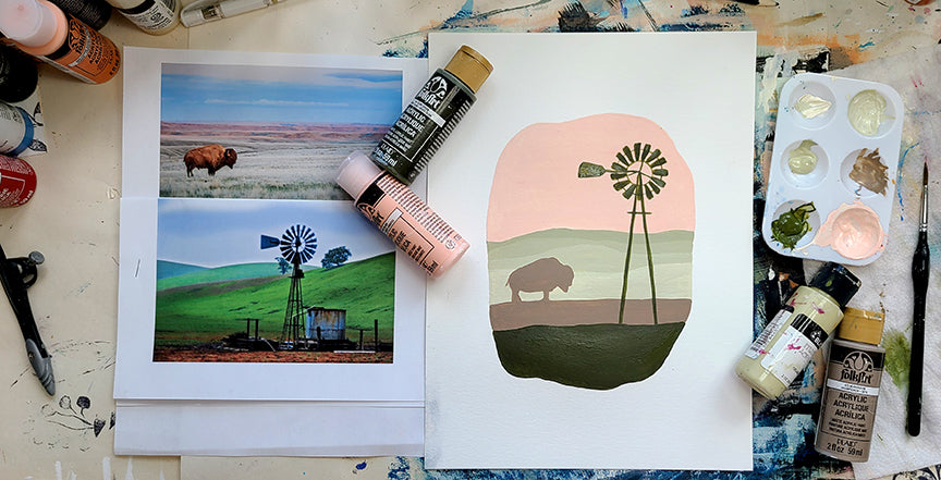 You will learn my color block technique inspired by printmaking and I’ll show you how to manipulate each composition to create an entirely unique painting style for each piece of art.