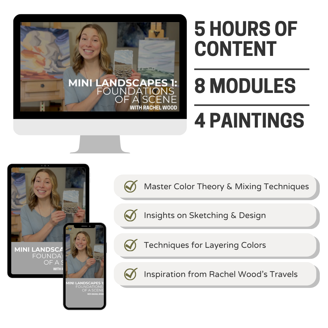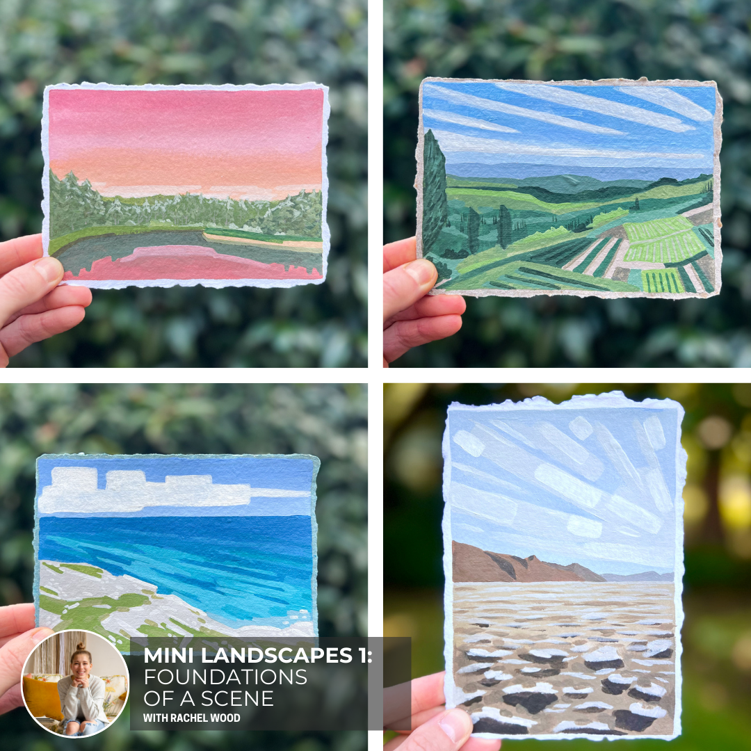 No prior experience needed - this class is designed for beginners interested in exploring landscape paintings with acrylics. In my Mini Landscapes II & III classes, we'll dive into creating even more advanced mini landscapes, focusing on perspective & adding details!