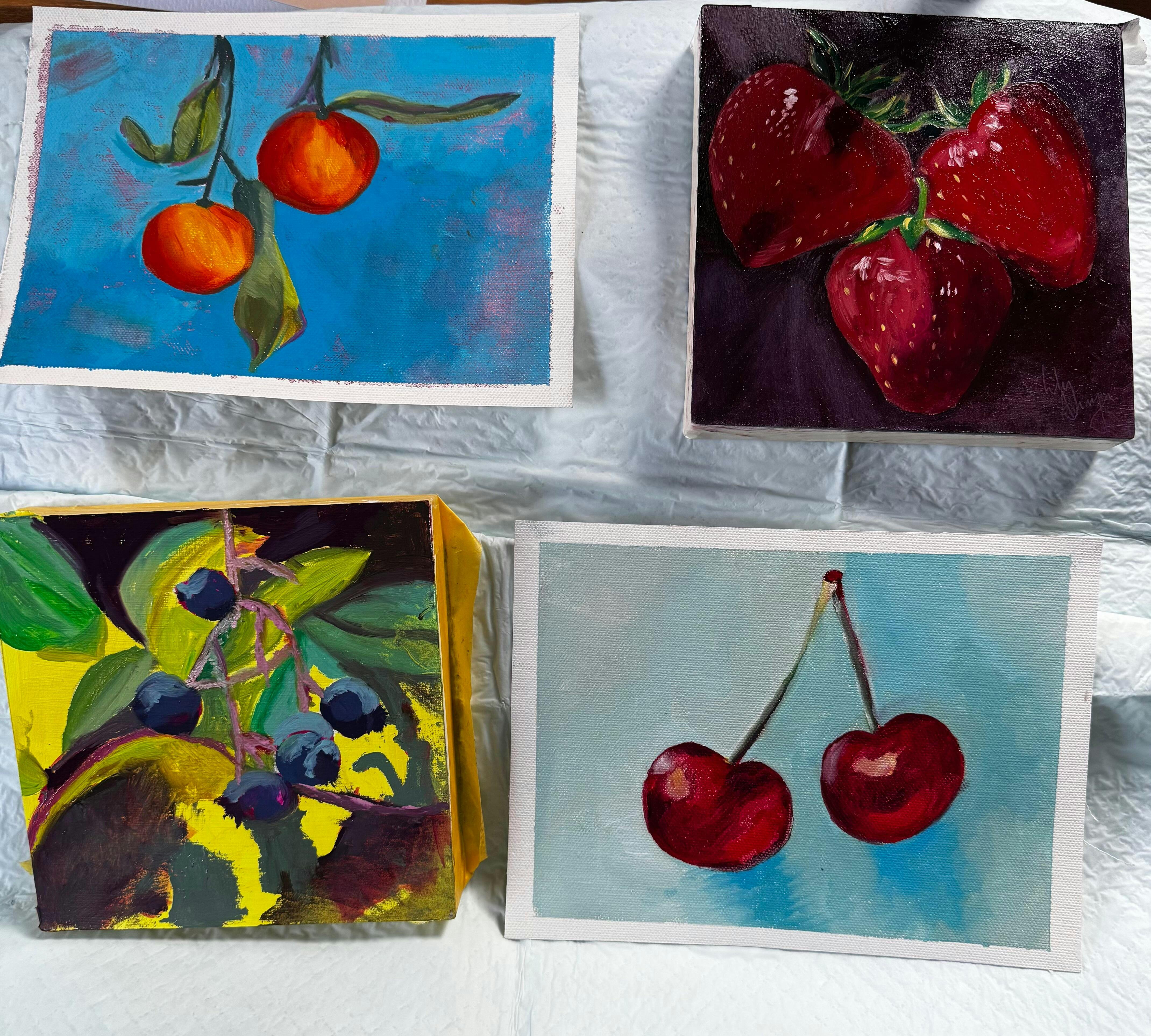 - 🎨 Step-by-step instructions to create five small fruit paintings and one beautiful still life bursting with light and color.