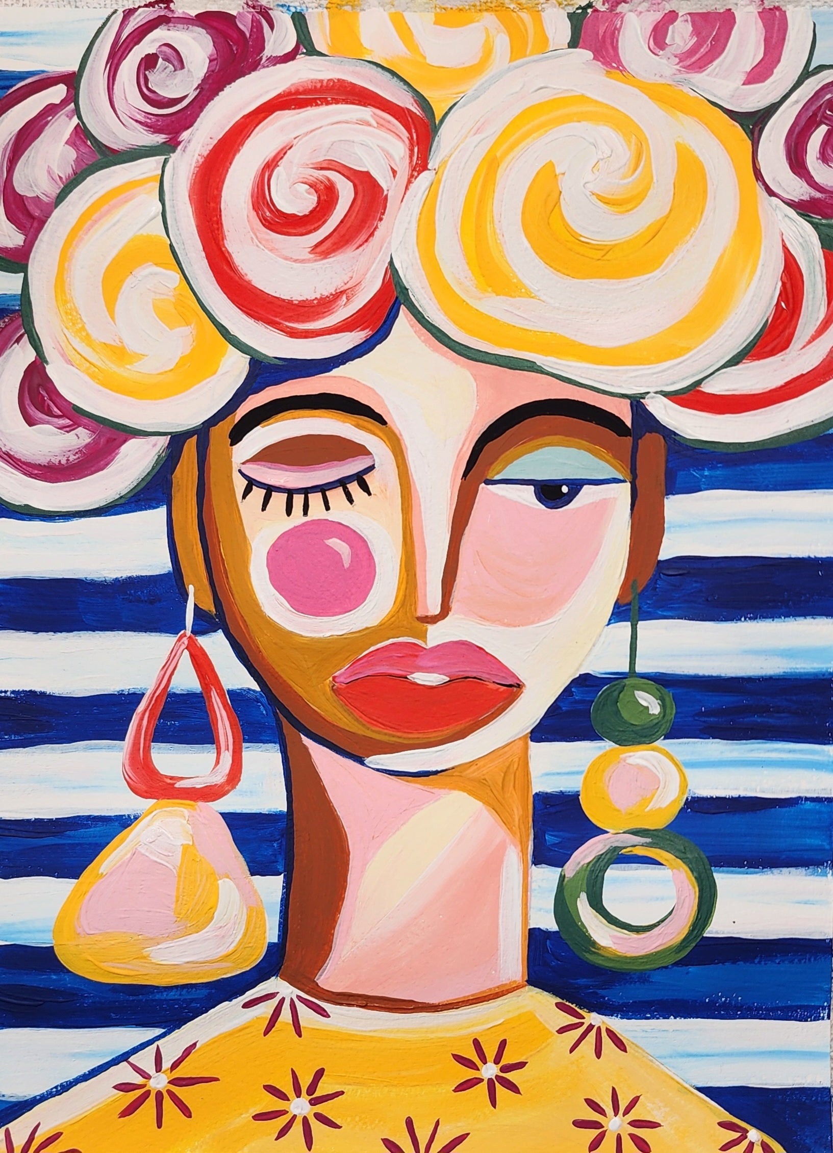 This was my first class with Yvette and I enjoyed it so much. I haven’t been painting with acrylics for a long time, but this class brought me back to it. I never really painted portraits, I did portrait drawings though. This class got me a bit out of my perfectionism,, the reason why I did it.